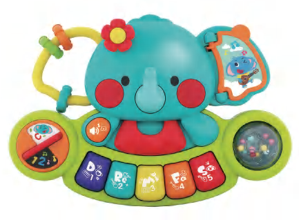2-in-1 Musical Elephant (with music, light, sound effects) Music mode & Learning mode; Flashing lights ; Volume button ;