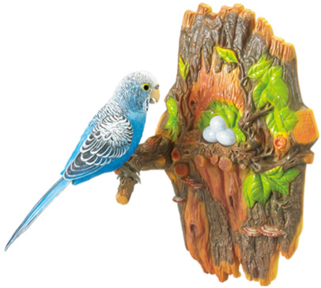 Place your hand near the bird or its tree branch—it chirps, flaps its wings, and moves its head in response to warmth! -