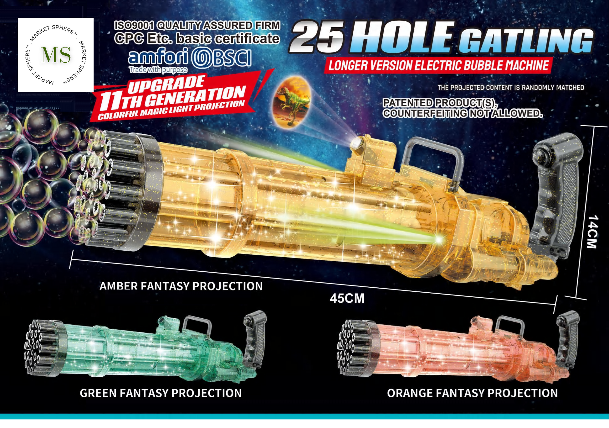 1️⃣ Newly upgraded function – 25 Holes Bubble Machine with Light and Projector (transparency).