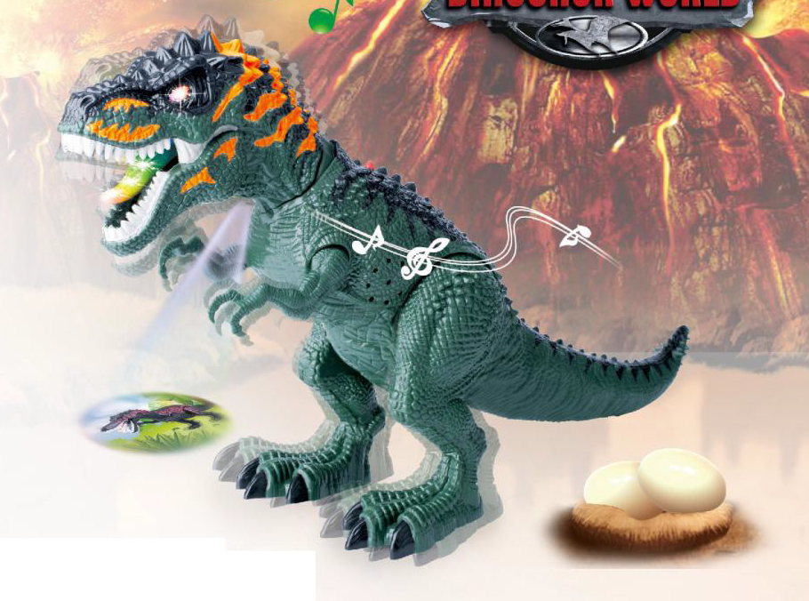 Contents: Electric dinosaur / Lighting/ Shouting/ Projection/ Laying eggs/ Crawling