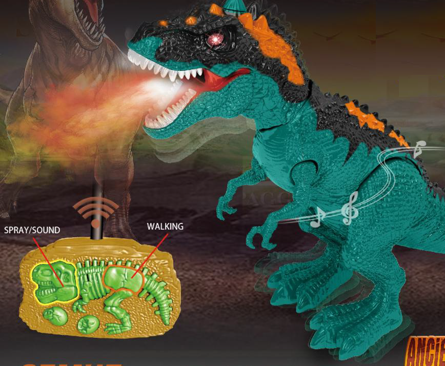 Contents: 2.4G remote control dinosaur/ Spray/ Lighting/ Shouting/ Walk