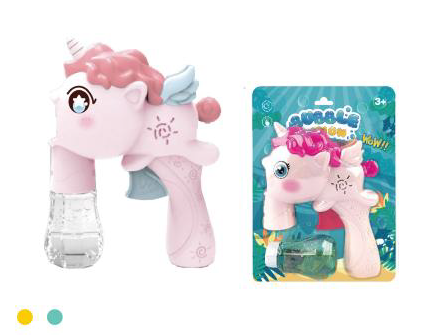Contents: Friction Unicorn Bubble Gun, with 1*55ml bubble solution